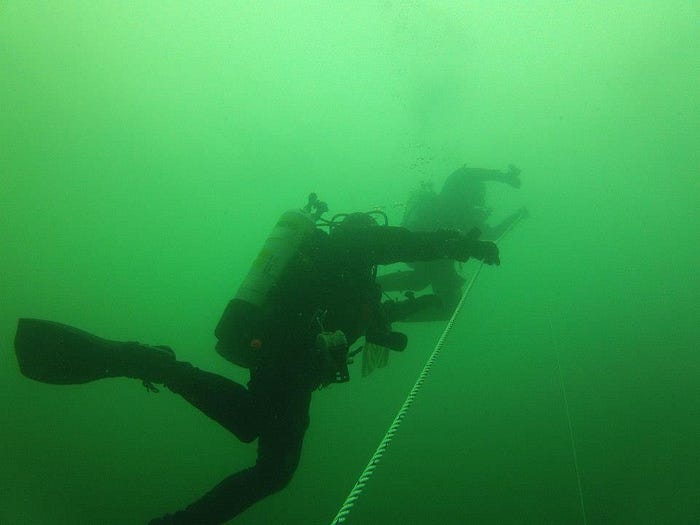 I checked the valve in my dry suit and looked down into the milky green. One hundred and sixty feet below me was the wreck of the U.S.S. Bass, a Barracuda-class submarine that was decommissioned and sank as part of a weapons test. Adjusting to the pressure is something you just a do.